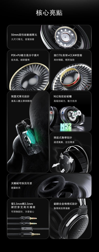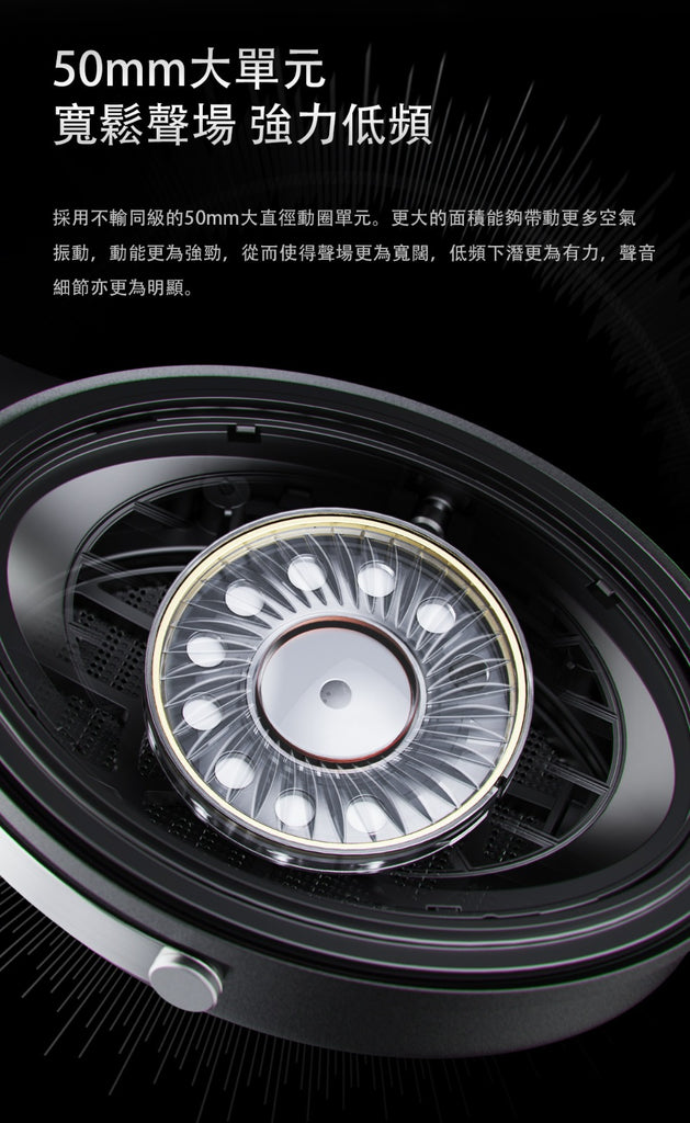 1. 50mm高性能動圈單元 ~ 大尺寸單元,音質保障