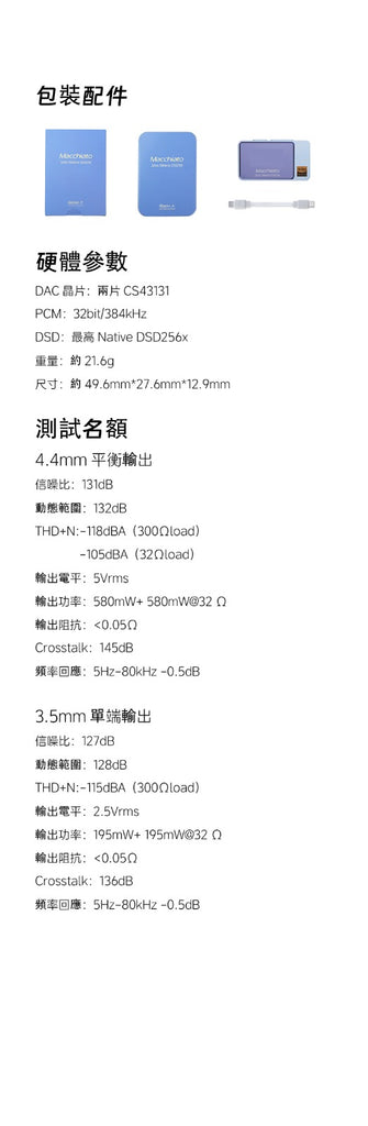 1. 雙CS43131旗艦DAC,實測THD+N:-118dB