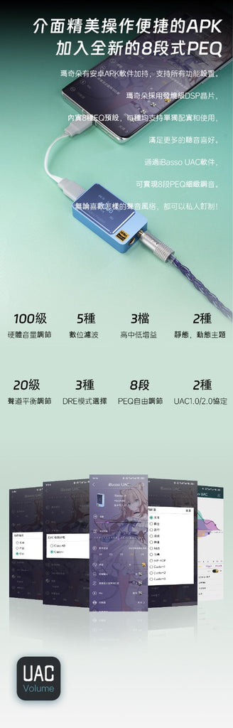 瑪奇朵採用發燒級DSP晶片,內置8種EQ預設,