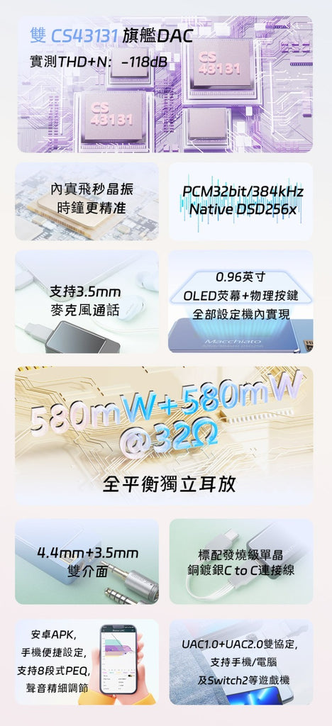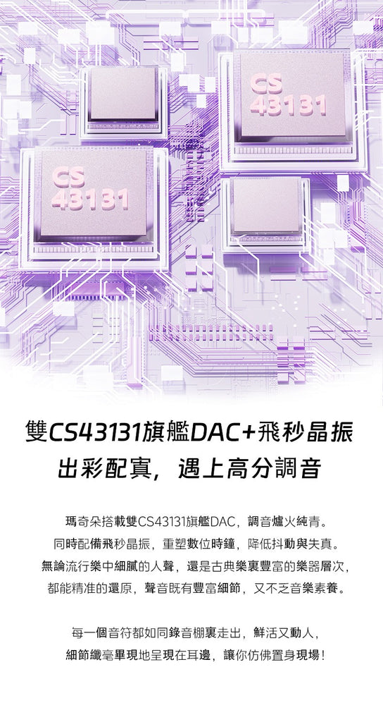 瑪奇朵搭載雙CS43131旗艦 DAC,調音爐火純青。
